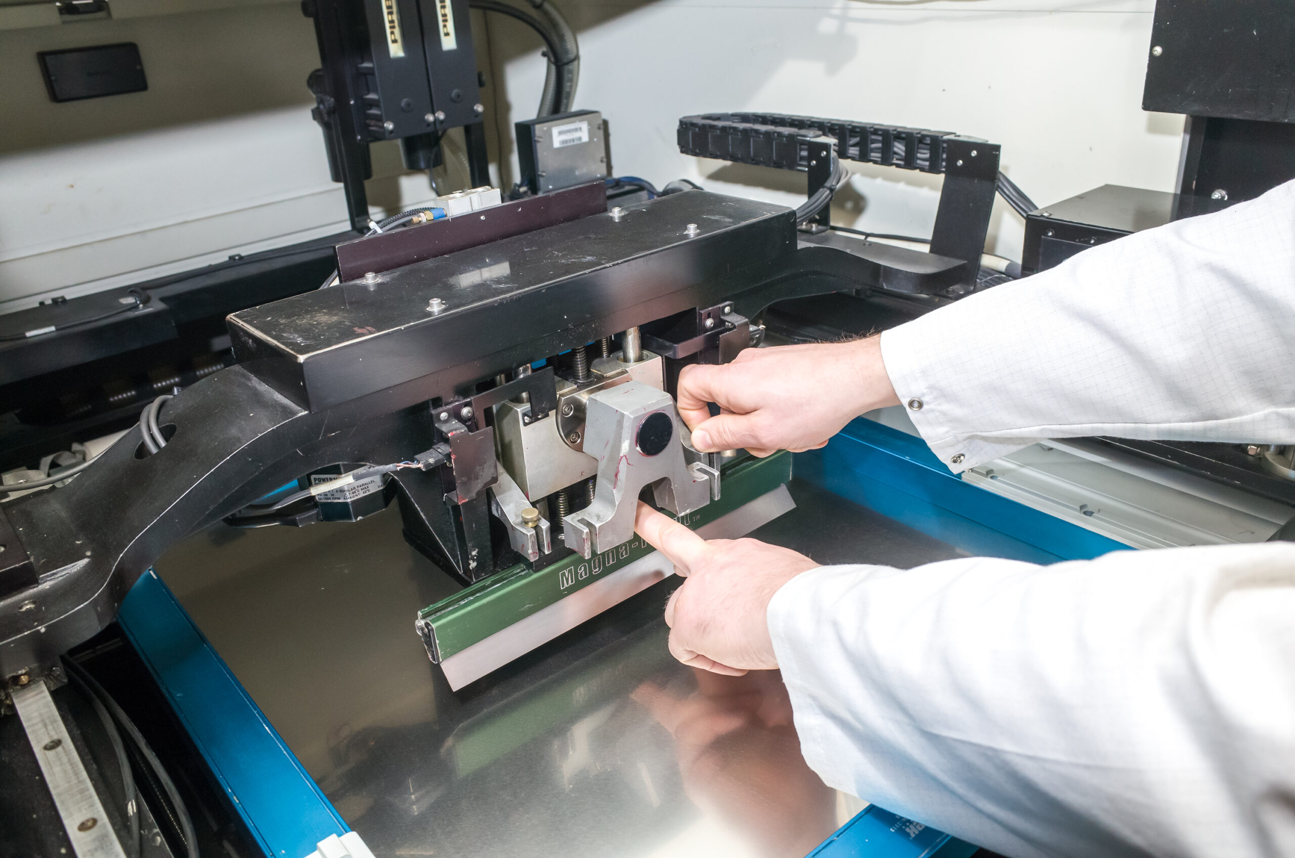 Precyzyjna drukarka umożliwiająca równomierne nanoszenie pasty lutowniczej na płytki PCB.